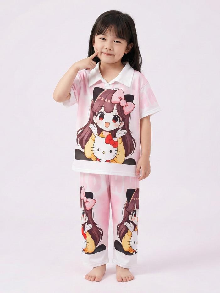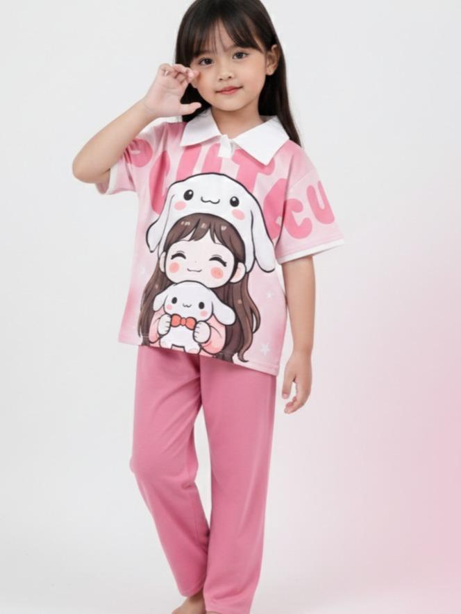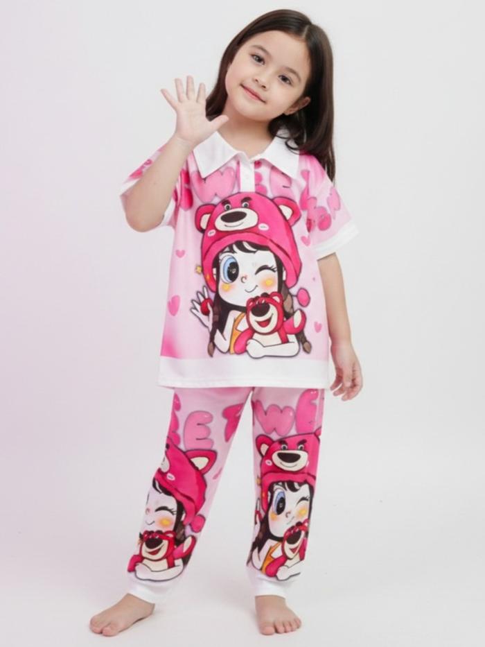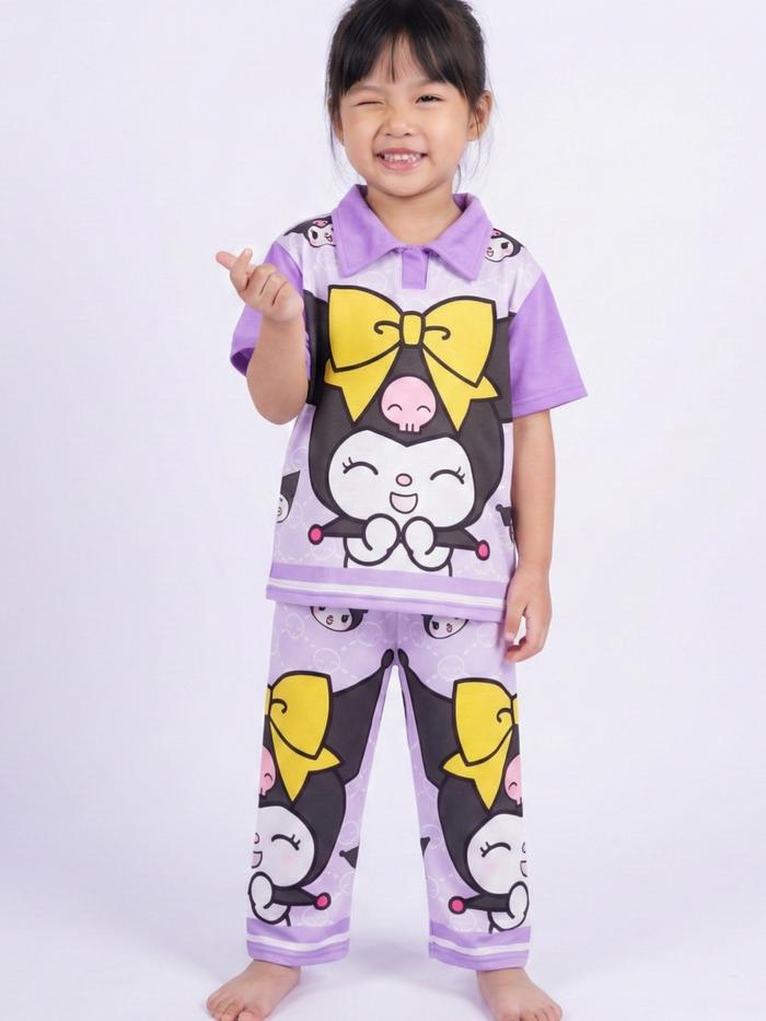 Aurel Xing Setelan Anak Perempuan Model Kerah Celana Panjang Full Printing Fashion - Wkr Kmcute Ungu, Xl