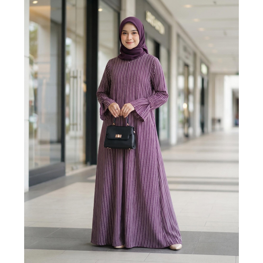 Sofia Dress Baju Gamis Muslim Wanita Salur Polos Size M-L XL-3L XXL-XXXL Bahan Condru Tekstur Jatuh