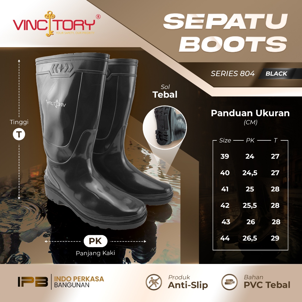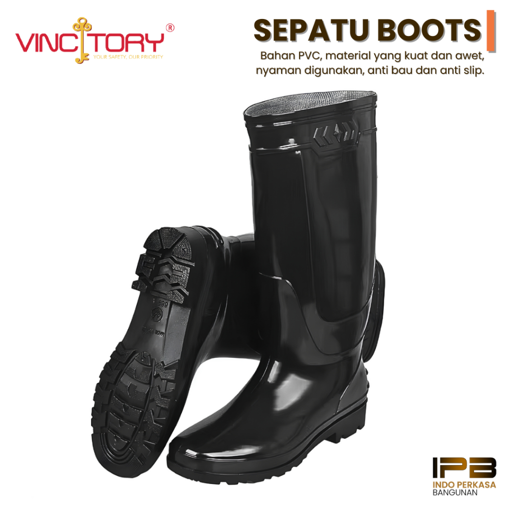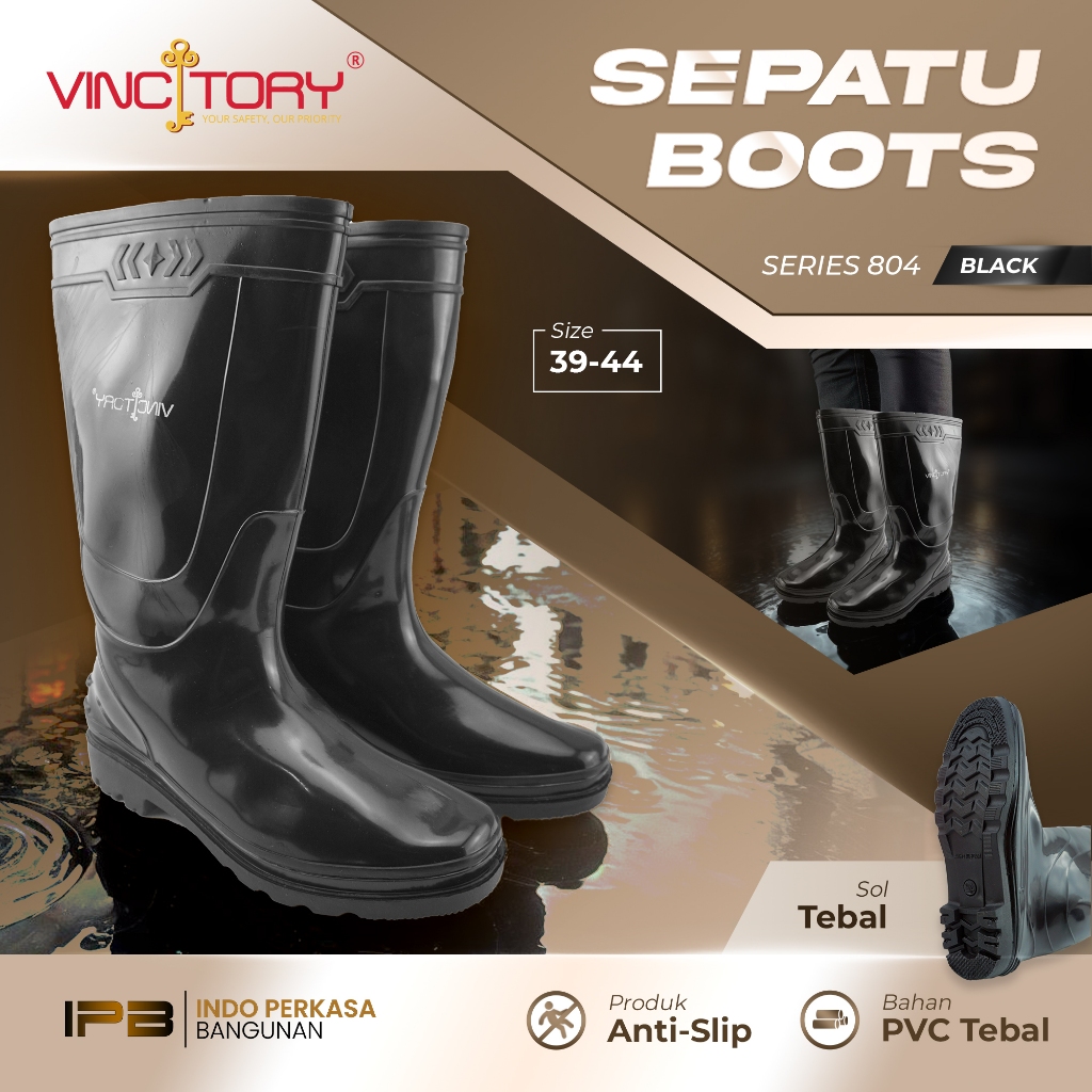 Sepatu Boots Hitam Karet Proyek | Sepatu Proyek | Sepatu Boot Panjang Karet | Safety Boot Vincitory