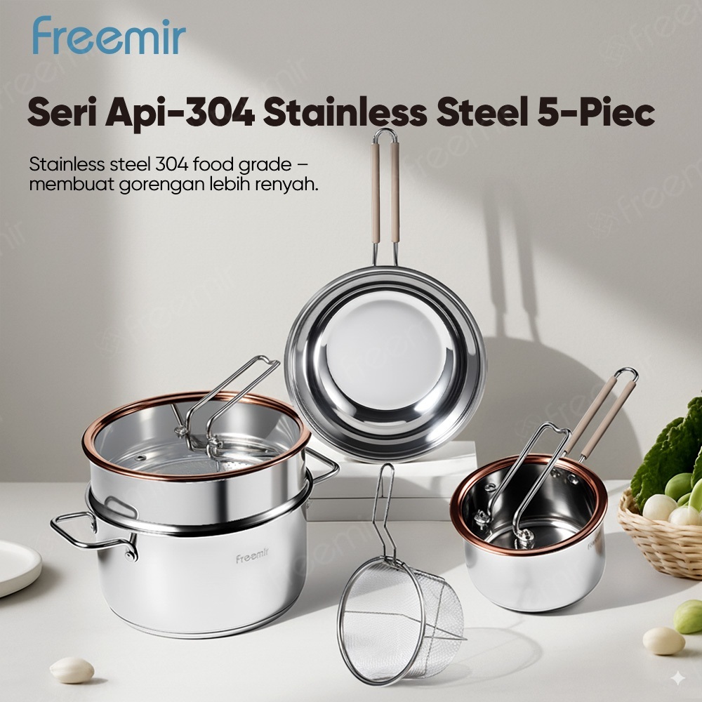 freemir Wajan Stainless Set Serie API SUS304 Induksi Bottom Anti Karat Panas Cepat Merata