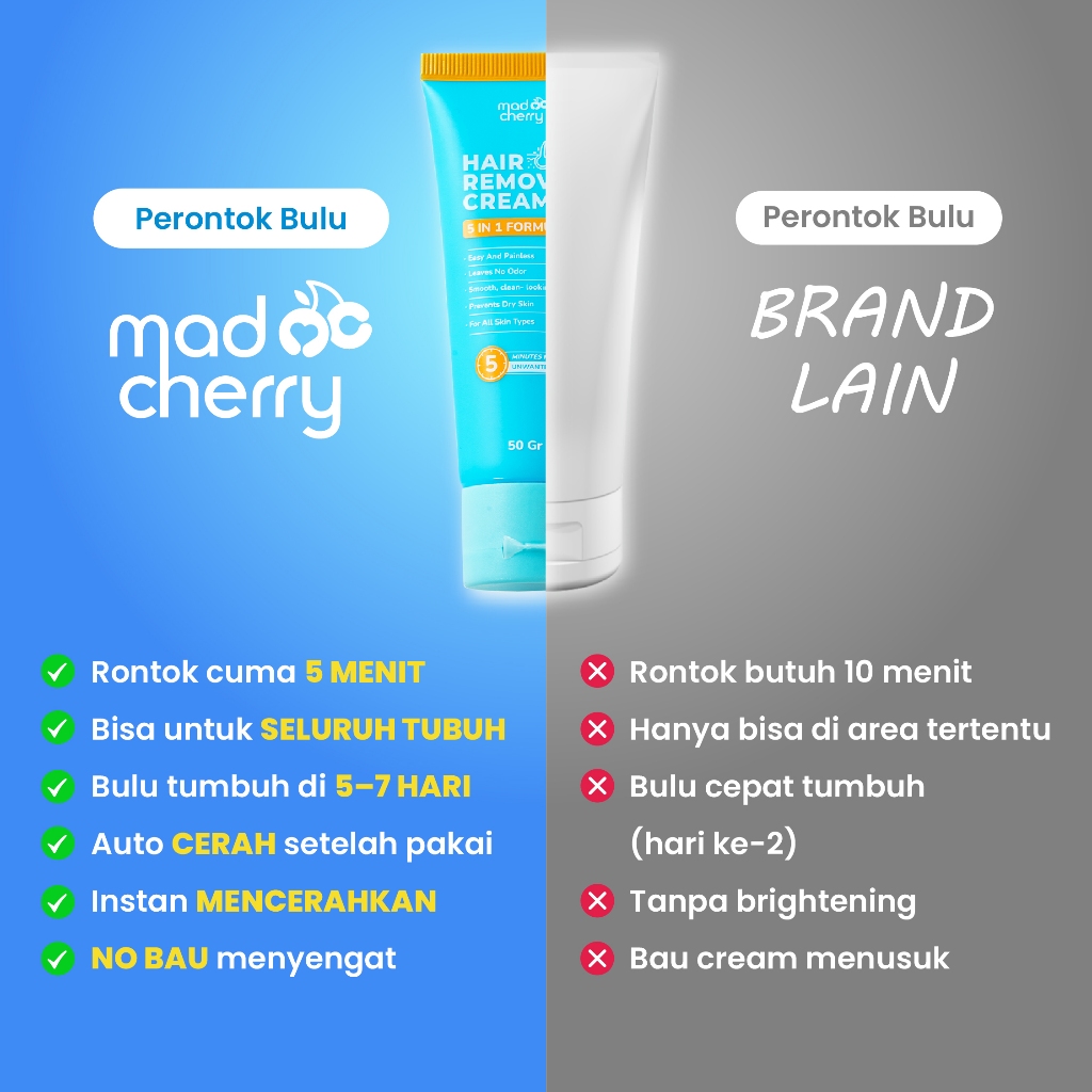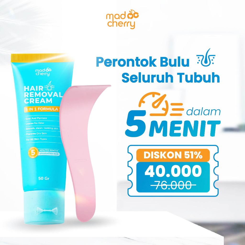 Mad Cherry Perontok Bulu Ketiak & Seluruh Badan 5 Menit mencerahkan kulit seketika Hair Removal