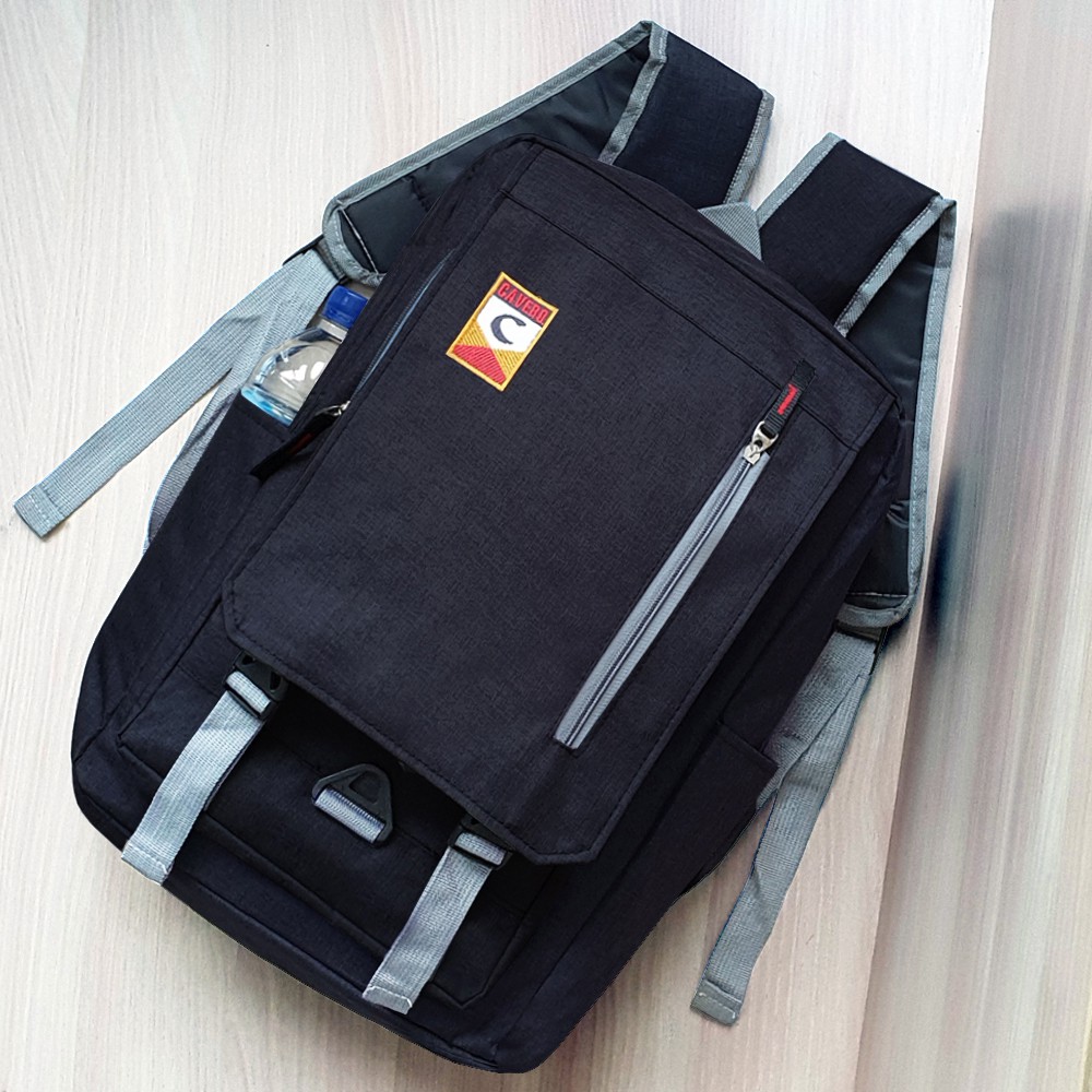 [JURAGAN TAS] Cavero Tas Ransel Pria Wanita CV2424 Desain Style Korea Material Kanvas - Black