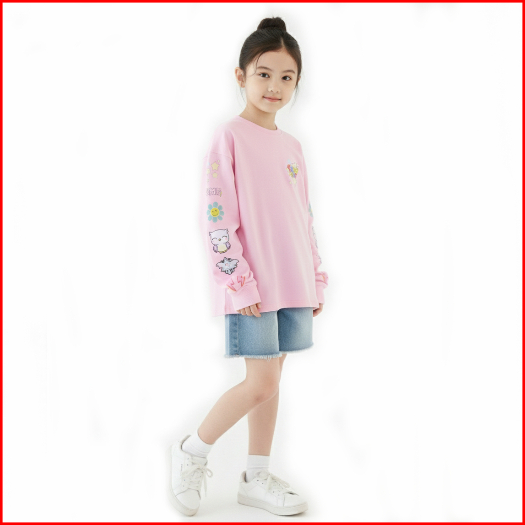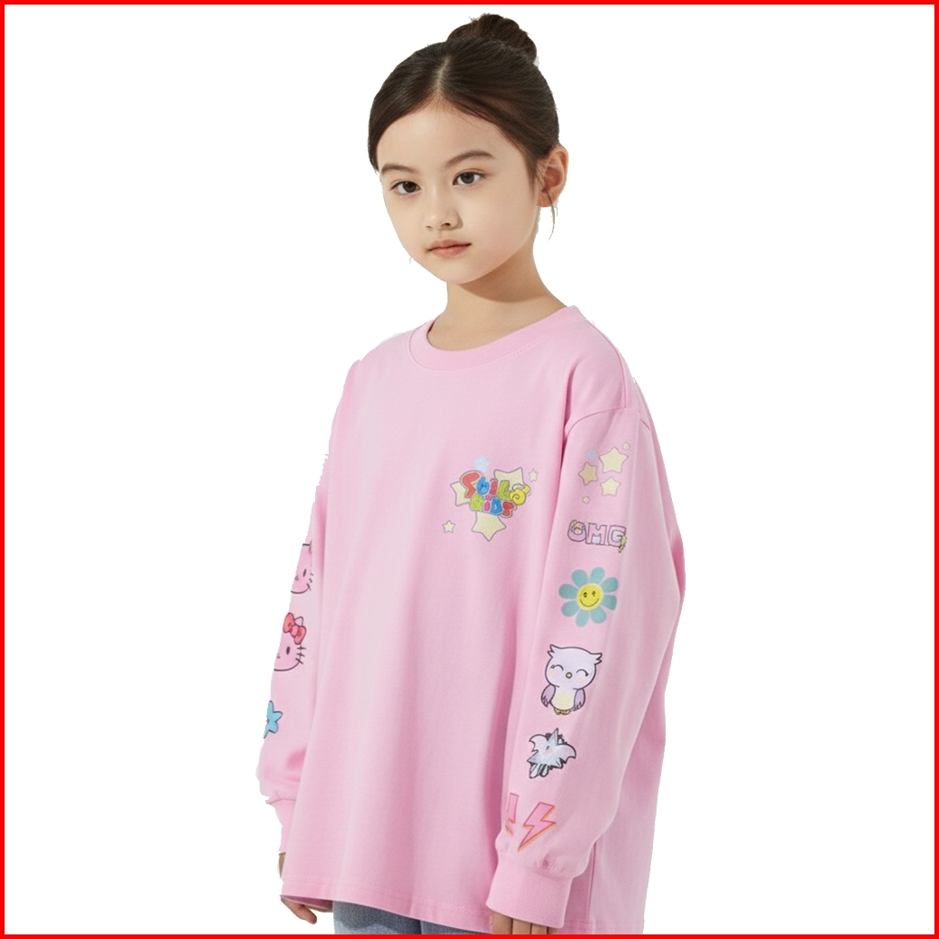 Shibakids Kaos Oversize Pink Anak Perempuan Lengan Panjang Usia 3 Tahun Sampai 14 Tahun