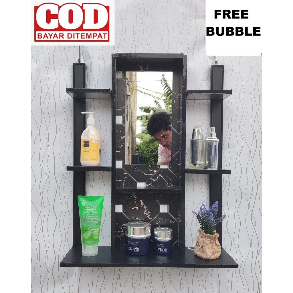 RAK KOSMETIK / RAK RIAS GANTUNG KAYU KUAT DAN MURAH 65x50cm ( VIRAL ) FREE KACA & BUBBLE X2