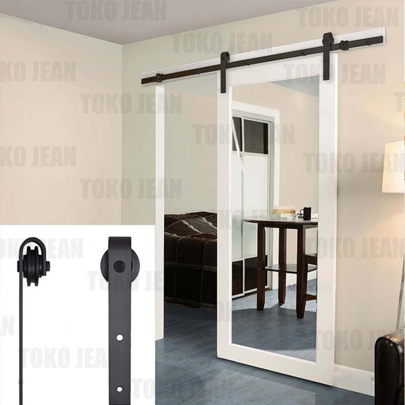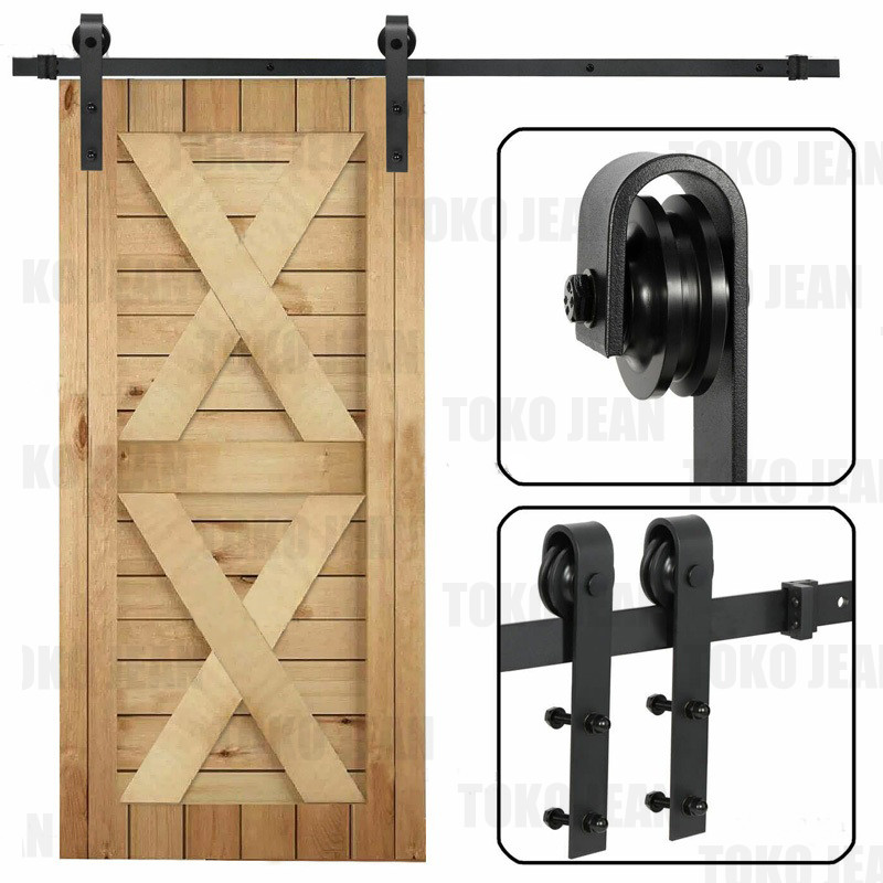 1.5M/1.83M/2M/2.44M Baja Karbon Kit Perangkat Keras Pintu Geser Pintu Geser Lemari Gantung Gaya Track Rail / Sliding / P