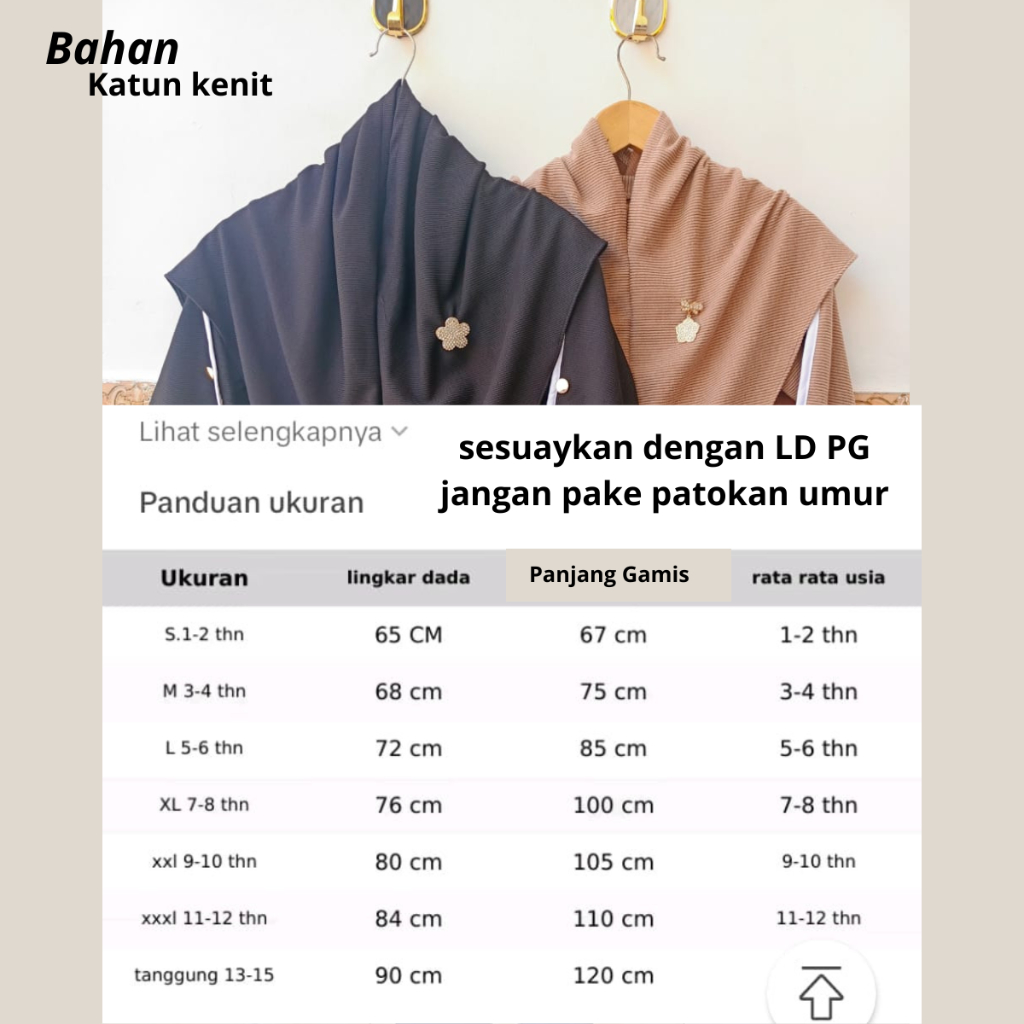 gamis terbaru pakayan muslim anak 1-15 tahun bahan kenit bisa kapel ibu dan anak
