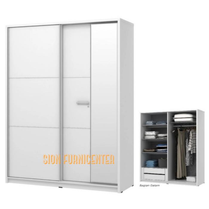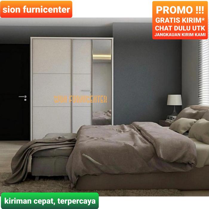 Lemari Baju Sliding 2Pintu Putih Glossy Dengan Cermin Kualitas Premium