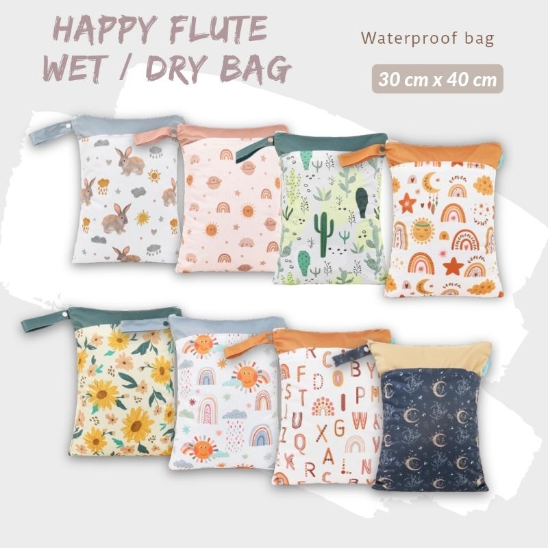 Happy Flute Diaper Wet Bag Waterproof Tas Kantong Anti Air Tas Baju Basah Kotor Renang Eco Friendly Bag Tas Travelling Serbaguna