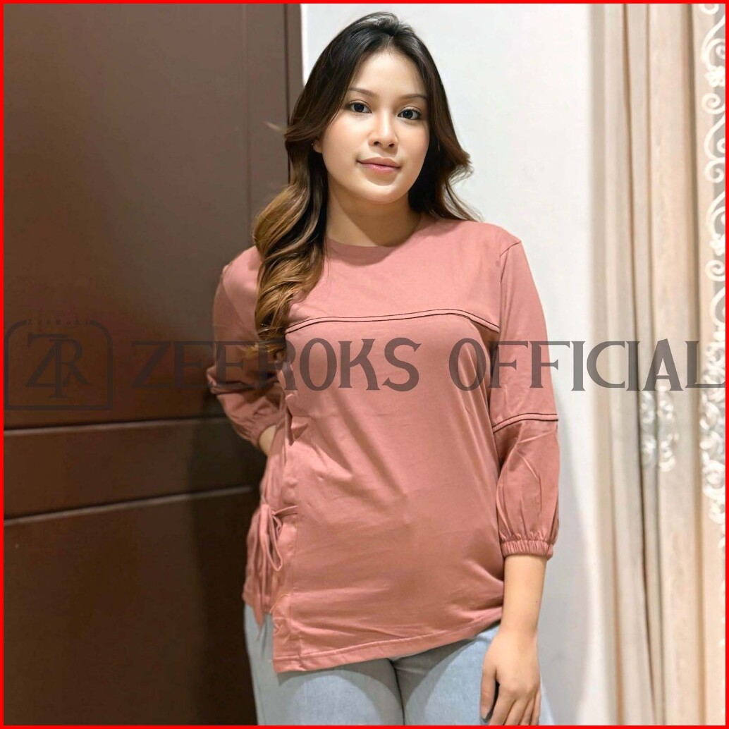 Zeeorks Baju Atasan Wanita Lengan Panjang Oryza Variasi Tali Samping Bahan Cotton Combed Nyaman Untuk Sehari-hari Dan Ac
