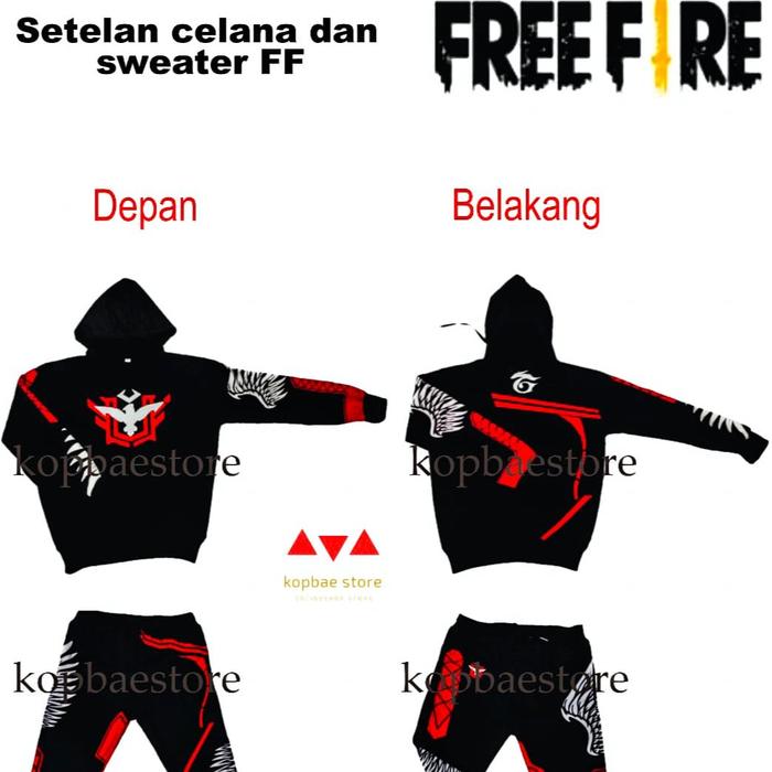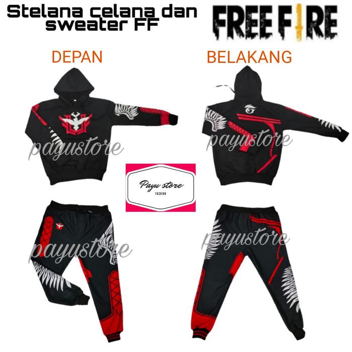 Stelan Hoodie Dan Celana Bnl Ff Anak / Stelan Sweater Dan Celana Free Fire Anak Fashion - Merah Heroic, M