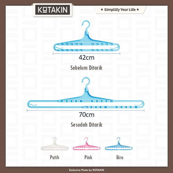 Hanger Handuk Tarik Lebar Gantungan Selimut Sprei Sajadah Bahan Plastik Tebal - Putih