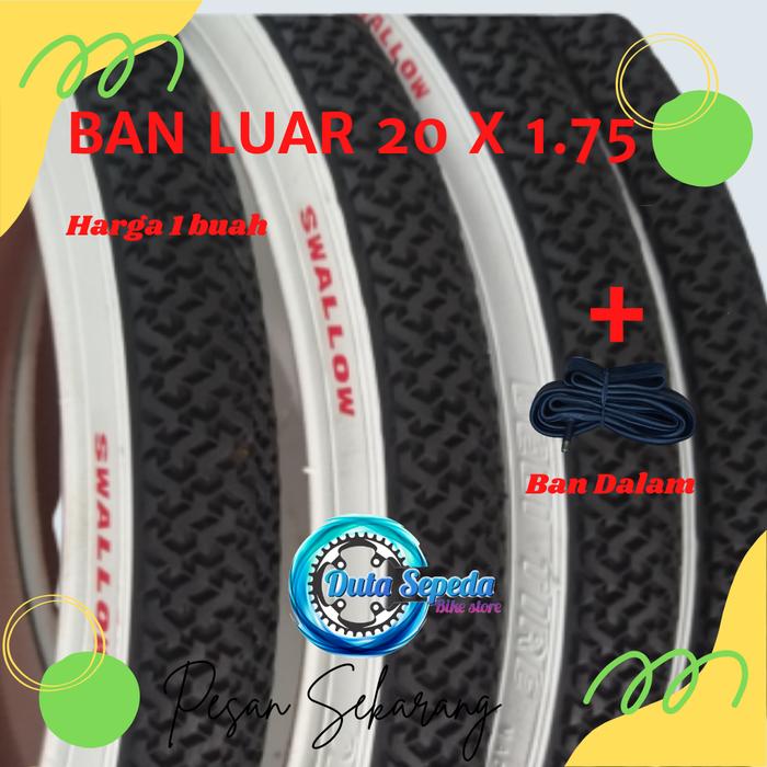 Ban Luar Dan Luar Dalam Sepeda Ukuran 20 X 1.75 Swallow Lucky Stone List Putih Dan List Kuning - Swallow Lis Putih, Ban