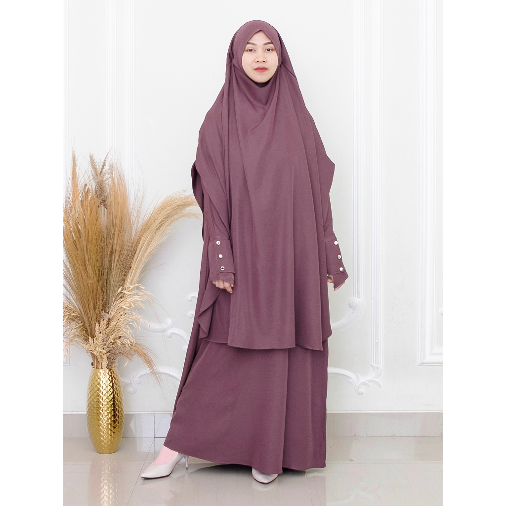 Aqueenah - Abaya Aisyah Set Hijab Syari Basic Daily Gamis Jilbab French Khimar Umroh dan Haji