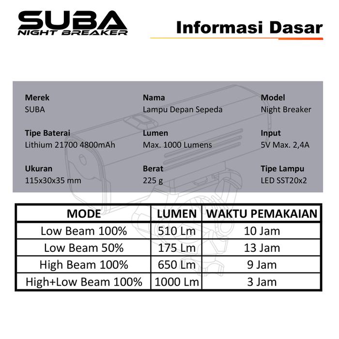 Suba Night Breaker Barfly - Lampu Depan Sepeda 1000 Lumens Sst20X2