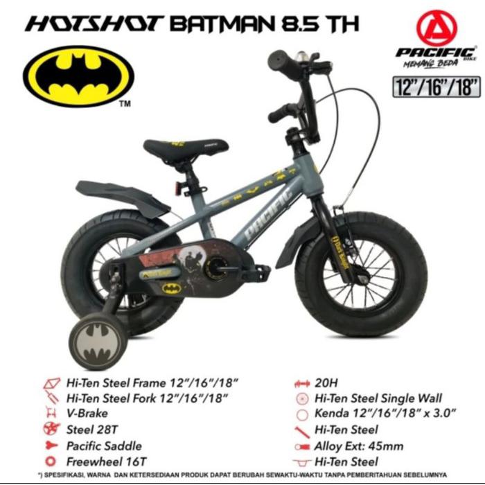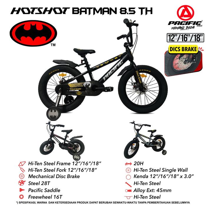 Sepeda Bmx Anak Pacific Hotshot Batman 8.5 Th Rem Double Cakram Ban Jumbo 3.0 12 Inch 16 Inch 18 Inch - Shadow Grey, 12