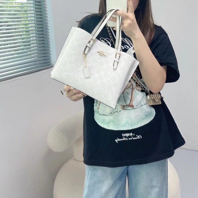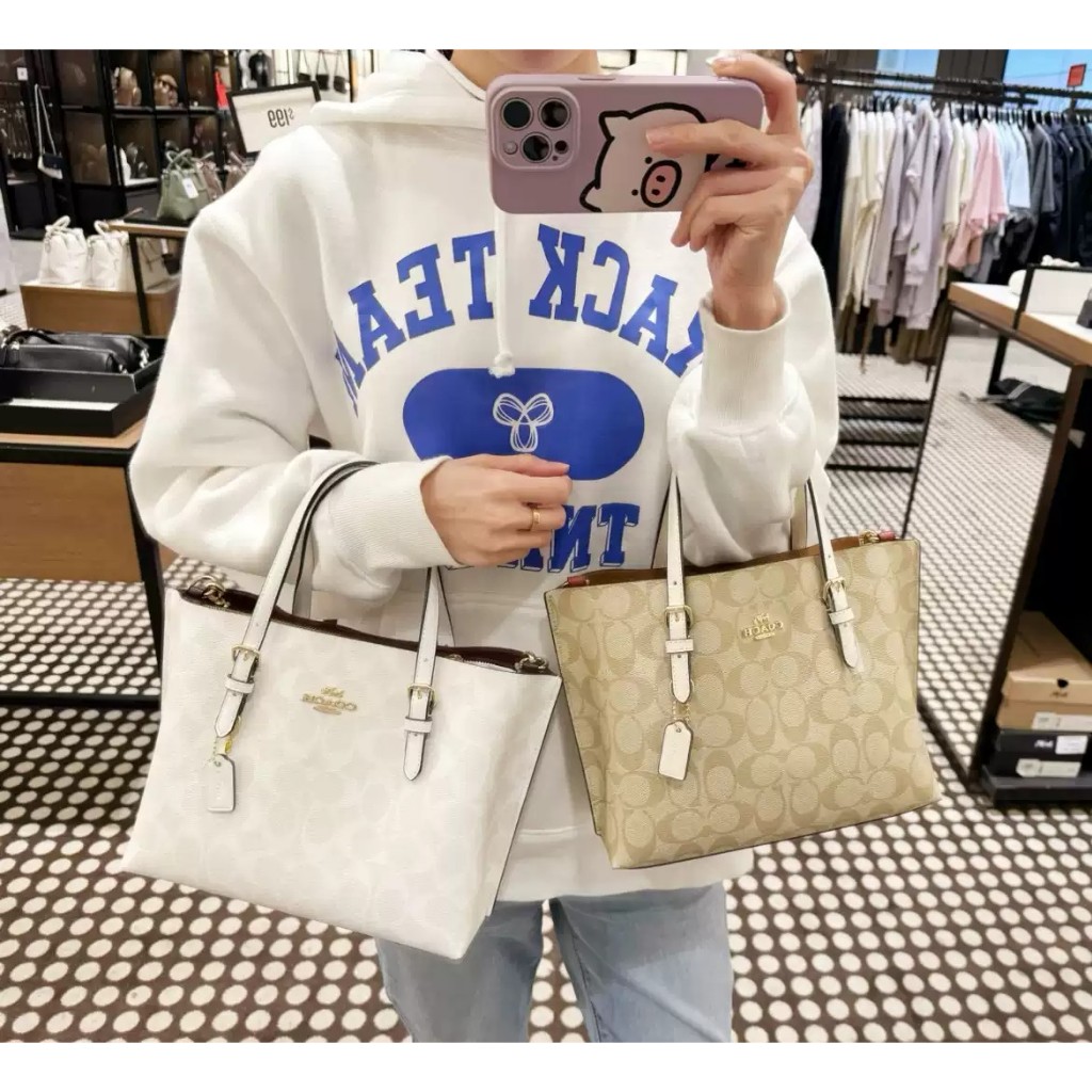 Coach Mollie Tote 25 In Signature Canvas Coach Tas Wanita Coach Tote Bag Coach shoulder Bag