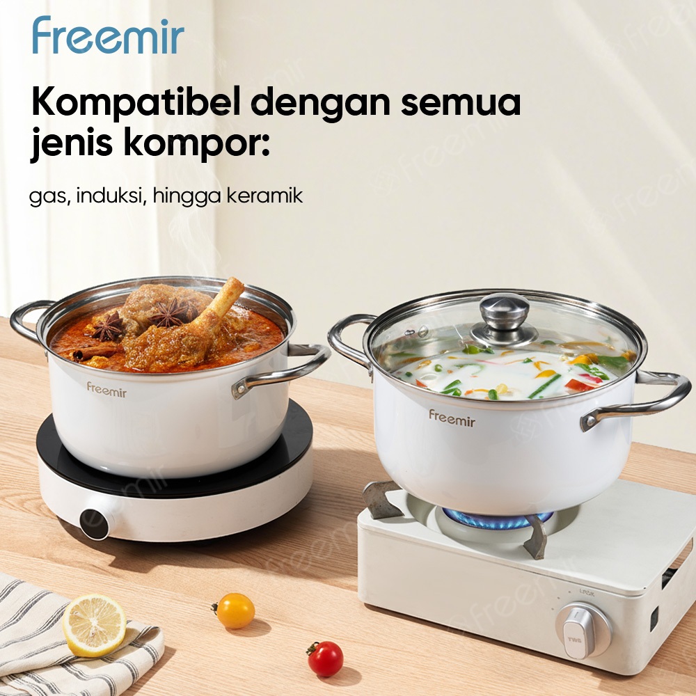 freemir Panci 304 stainless steel Putih dengan uapSatu pot 24cm untuk berbagai kegunaan kapal uap Panci dan wajan dapur