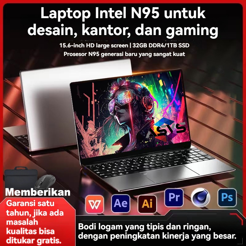 Kantor Laptop komputer 15,6 Inci Terbaru 2025, 12 gen Prosesor Quad-Core, RAM 32GB DDR4, SSD 1TB, Office Windows 11 Terinstal, Garansi 1 Tahun