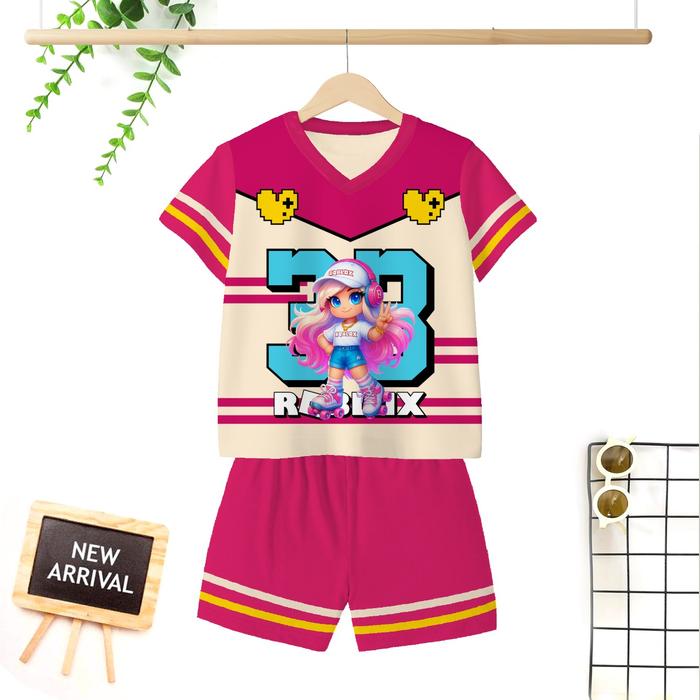 Dunia Anak - Setelan Angka Roblox Premium Anak Perempuan Celana Pendek Usia 1-8 Tahun- Setelan Roblox Murah Baju Angka A