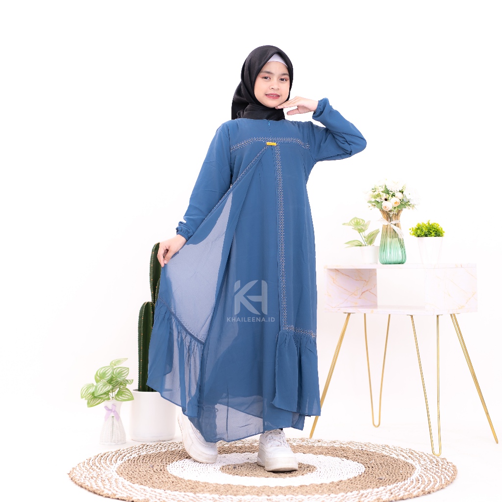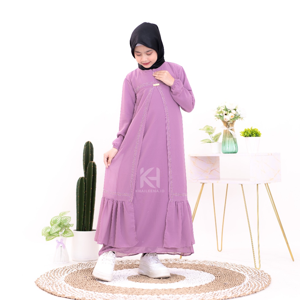 Gamis Anak Perempuan Khaileena Dress Ceruty Swarovsky | gamis lebaran anak perempuan 2024 baju muslim anak perempuan tanggung terbaru kekinian usia 6 sampai 14 tahun bahan ceruty baby doll armani