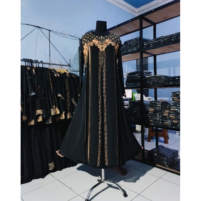 Gamis Abaya Hitam Turkey Bahan Jersey Mix Ceruty Bordir / Baju Busana Maxi Dress Muslim Wanita - Mayra