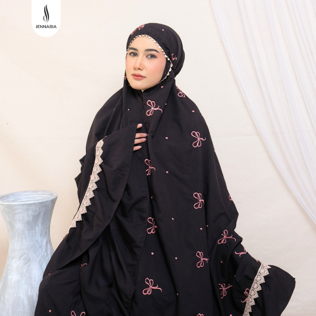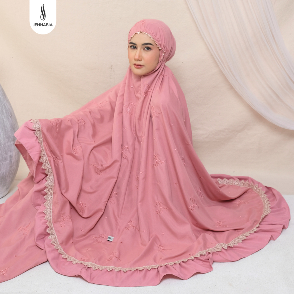 Mukena Ribbon Coquette Bordir Pita Rempel Renda Mewah