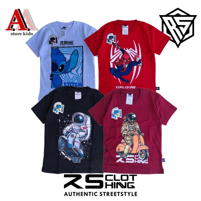 PAKET 4PCS KAOS DISTRO ANAK LAKI LAKI PEREMPUAN USIA 4-14 TAHUN BAHAN KATUN 30S / AA STORE KIDS - OREN DISTRO-NAVY LESTA