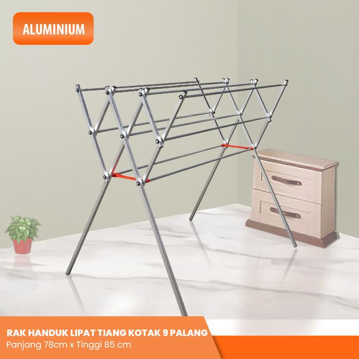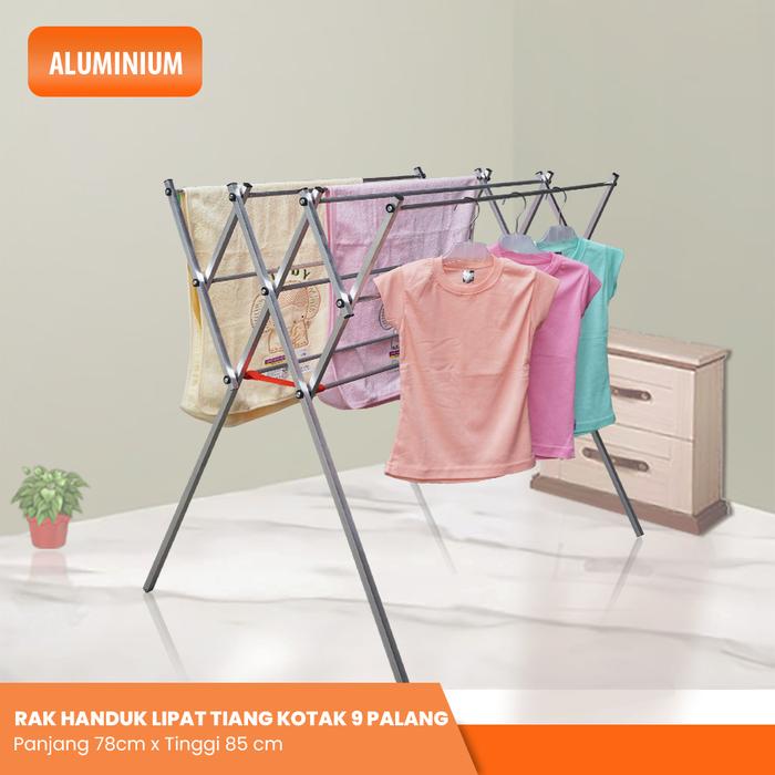 Jemuran Pakaian Rak Handuk Lipat Aluminium Beta Pipa Kotak - Tiang Kotak