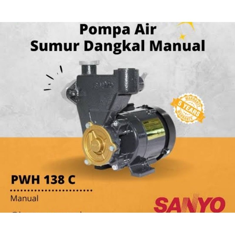 Pompa Air Sanyo non Otomatis PWH138 C/Pompa Air Sumur Dangkal 9 Mtr