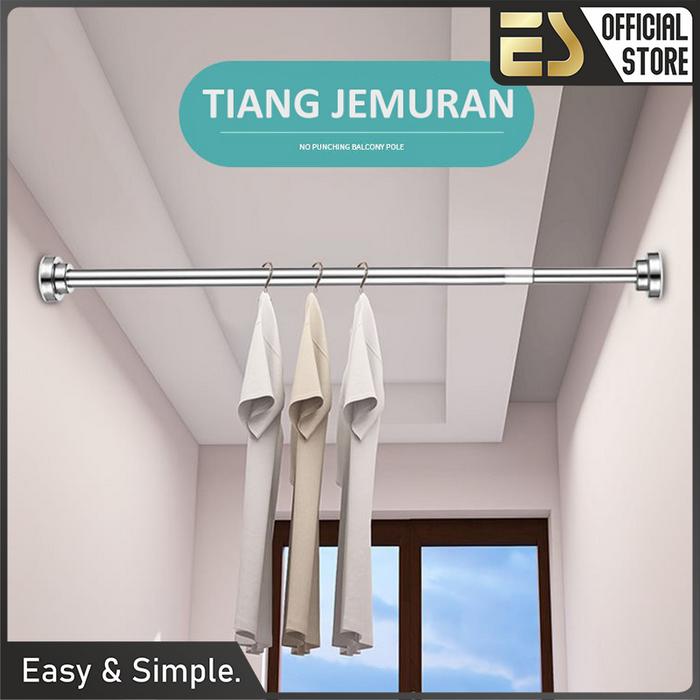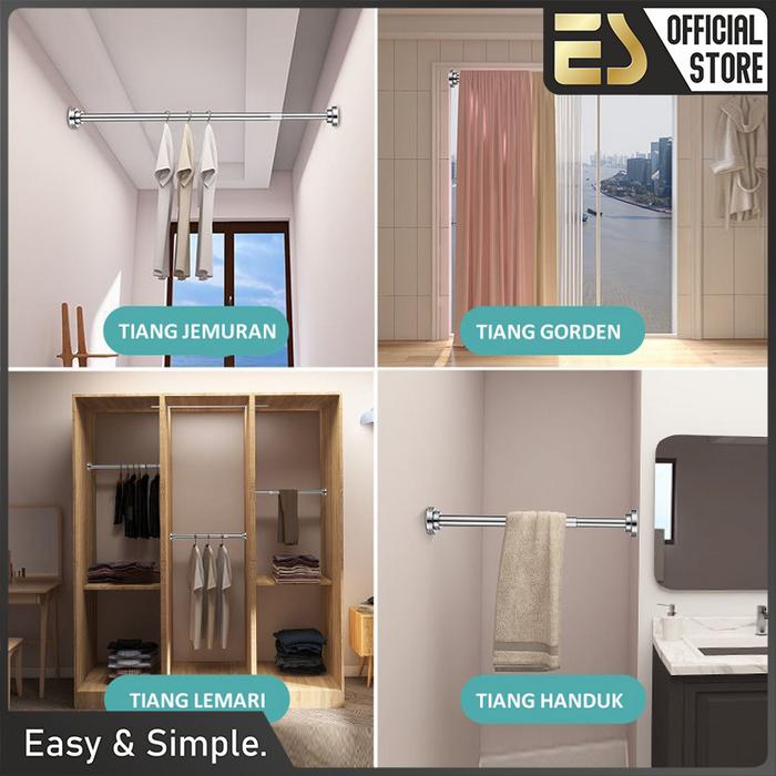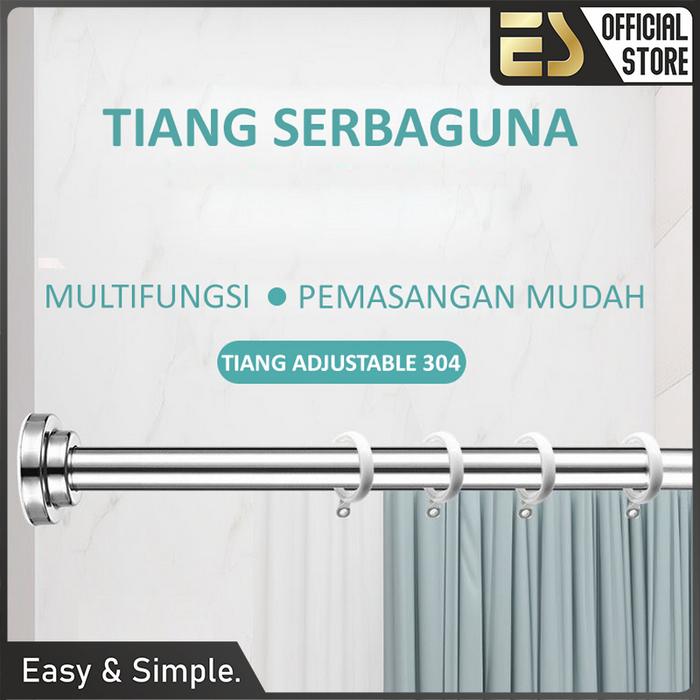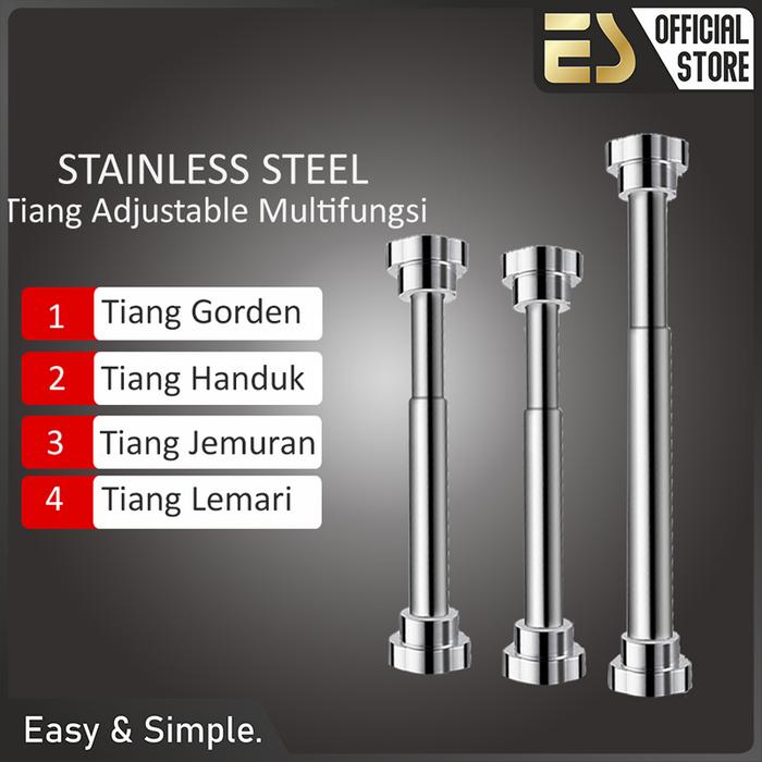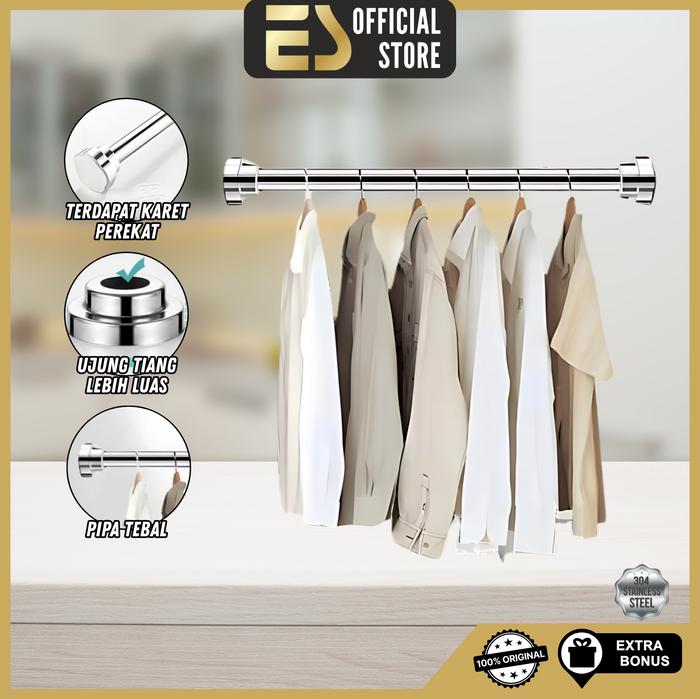 Es Tiang Gantungan Pakaian Tiang Gorden Tiang Serbaguna Teleskopik Stainless Steel Tiang Gantungan Baju Hanger