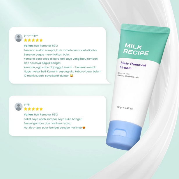 Milk Recipe Hair Removal Cream 70gr - Cream Pembersih Bulu Hanya 5- 8 Menit Krim Perontok Bulu Waxing Pencukur Penghilang Bulu