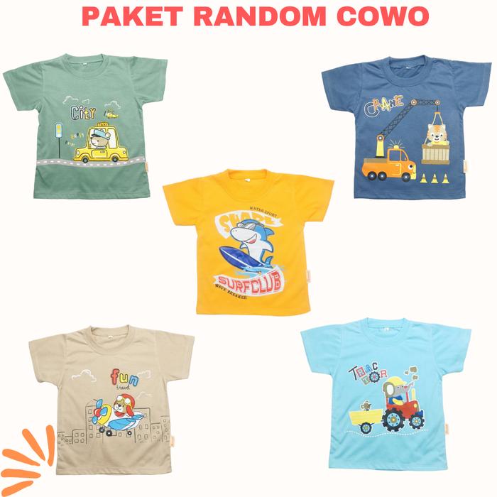 PAKET HEMAT KAOS ANAK 5 PCS RANDOM MOTIF ( 1 - 5 TAHUN ) - RANDOM COWO, S ( 1TAHUN )