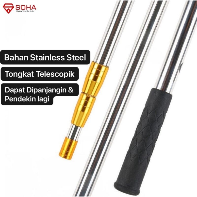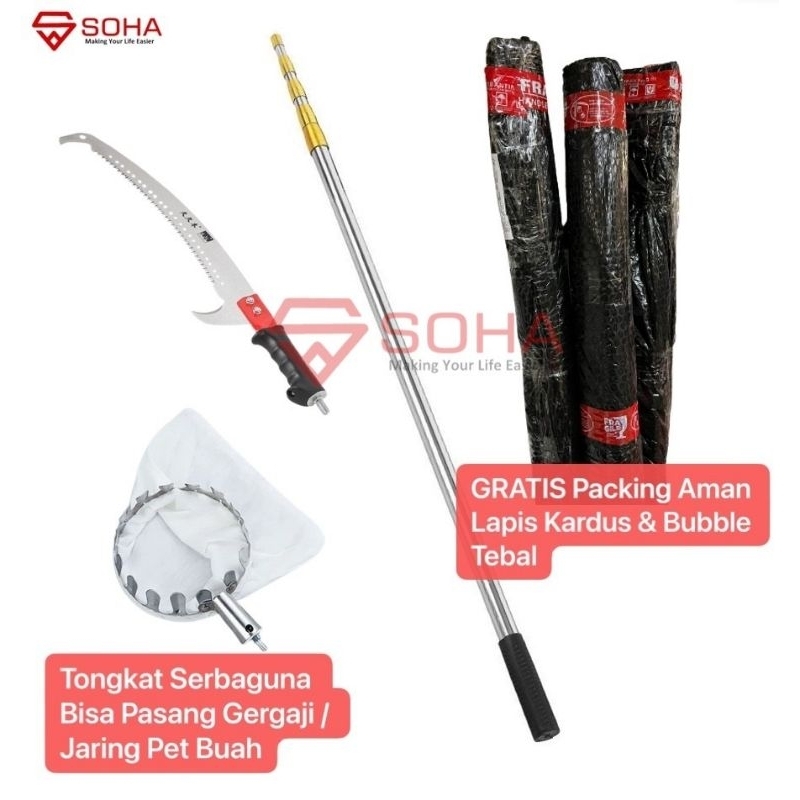 Pck-10 Alat Pemetik Buah Tongkat Tinggi Stik Serbaguna Tongkat Petik Buah Panjang Teleskopik Metal Fruit Picker Bisa Ger