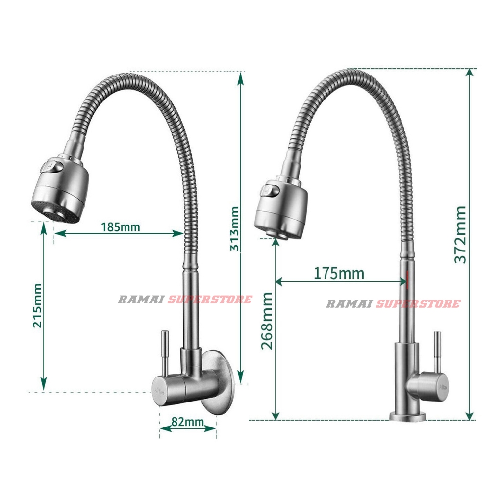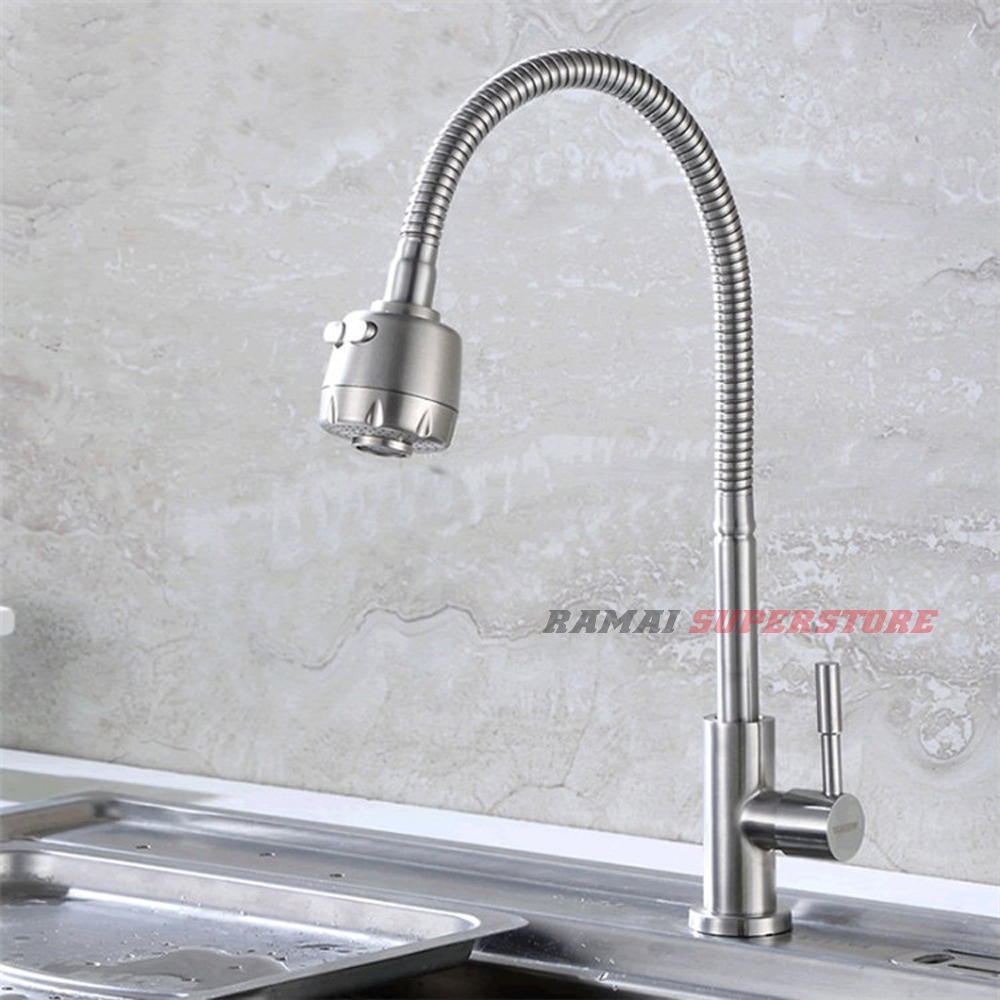 Keran Angsa Fleksibel Kepala Besar Kran Cuci Piring Sink SUS 304 Elegan