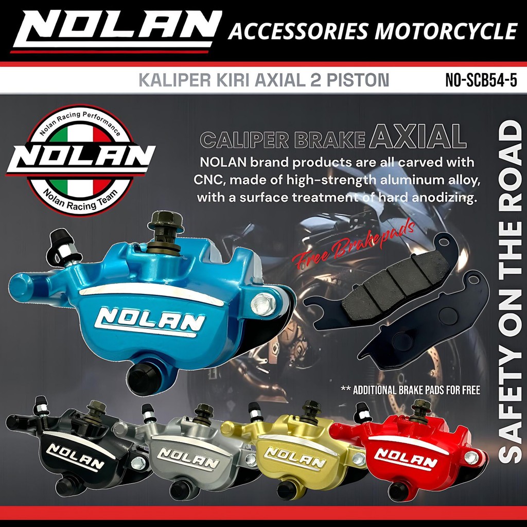 NOLAN Kaliper Axial Brake 2 Piston 1 Pin Kiri SCB54-5 Bahan Full Aluminium Alloy