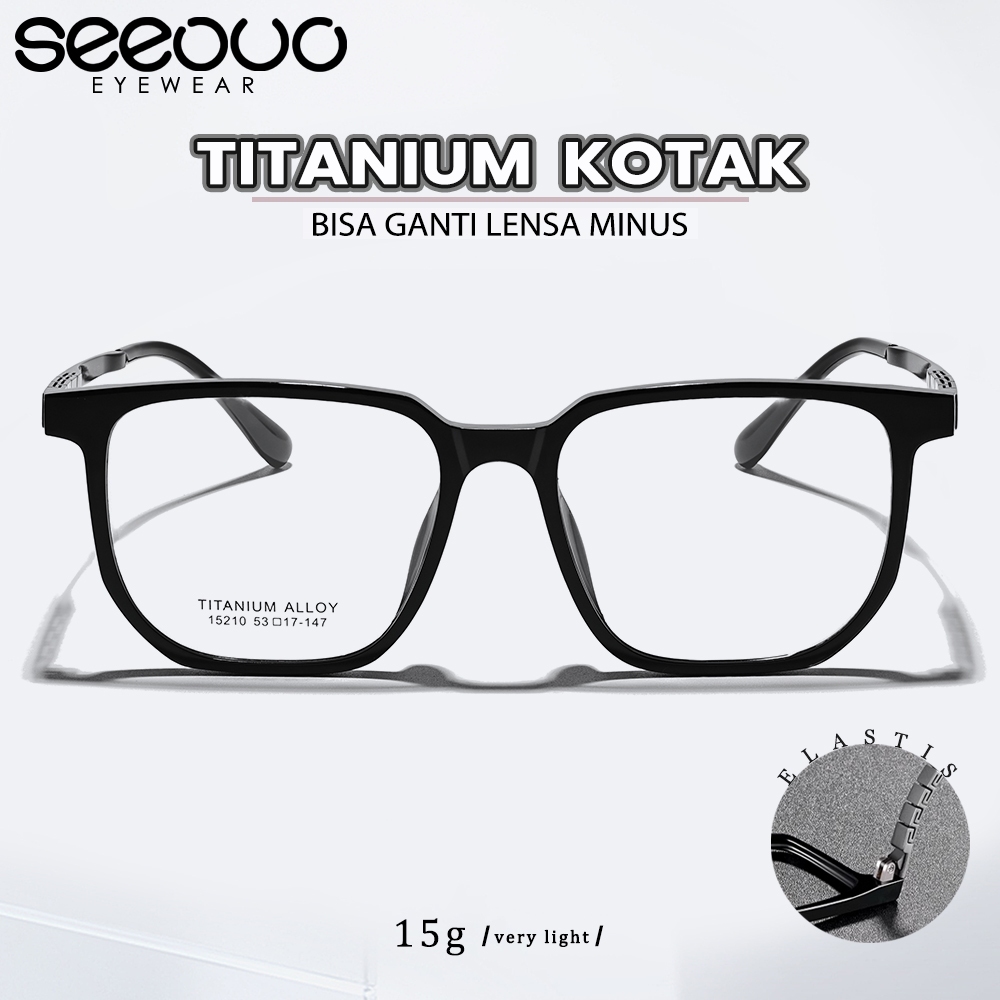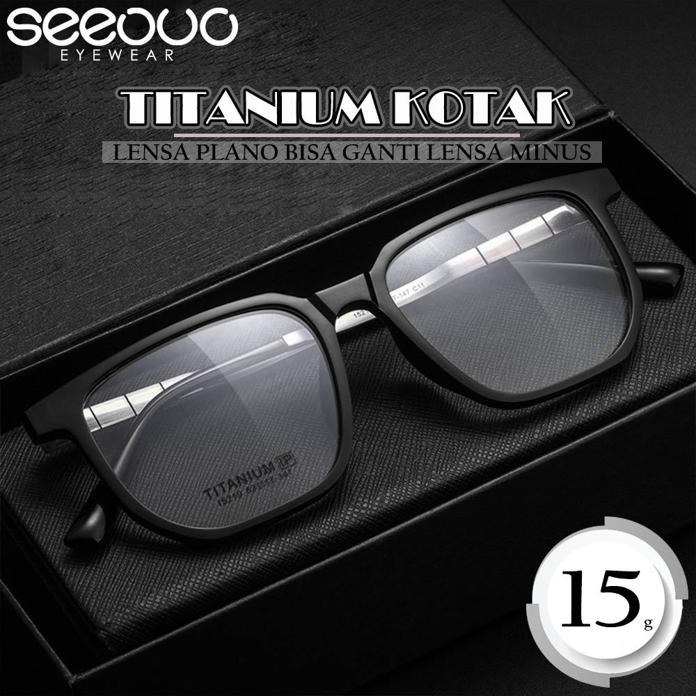 Seeouo Frame Kacamata Plano Lens Model Kotak Stylish Titanium Light Frame Comfortable Ringan Unisex Fashion Pria Wanita