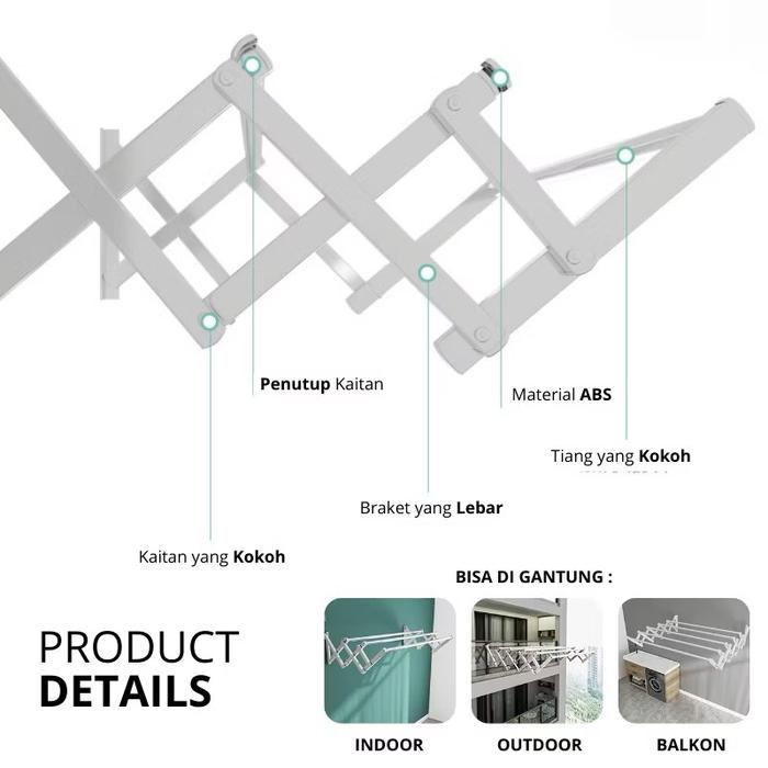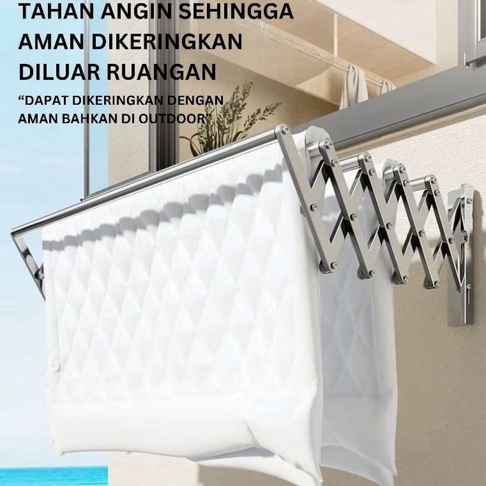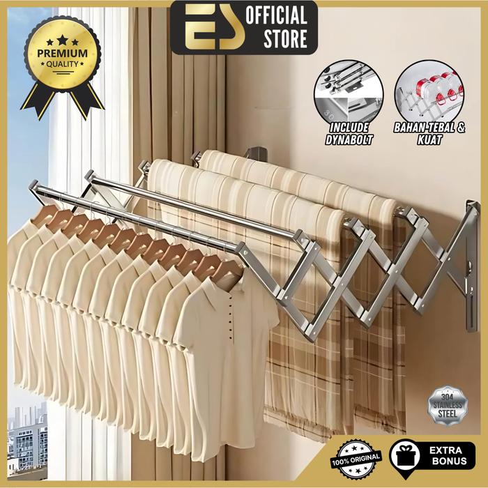Premium Jemuran Baju Tempel Dinding Stainless Sus 304 Tebal Anti Karat Jemuran Lipat Jemuran Tembok Dengan Pipa Tebal