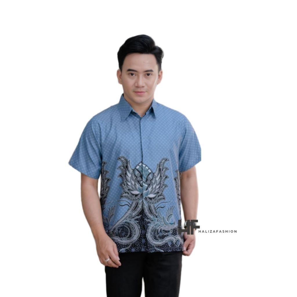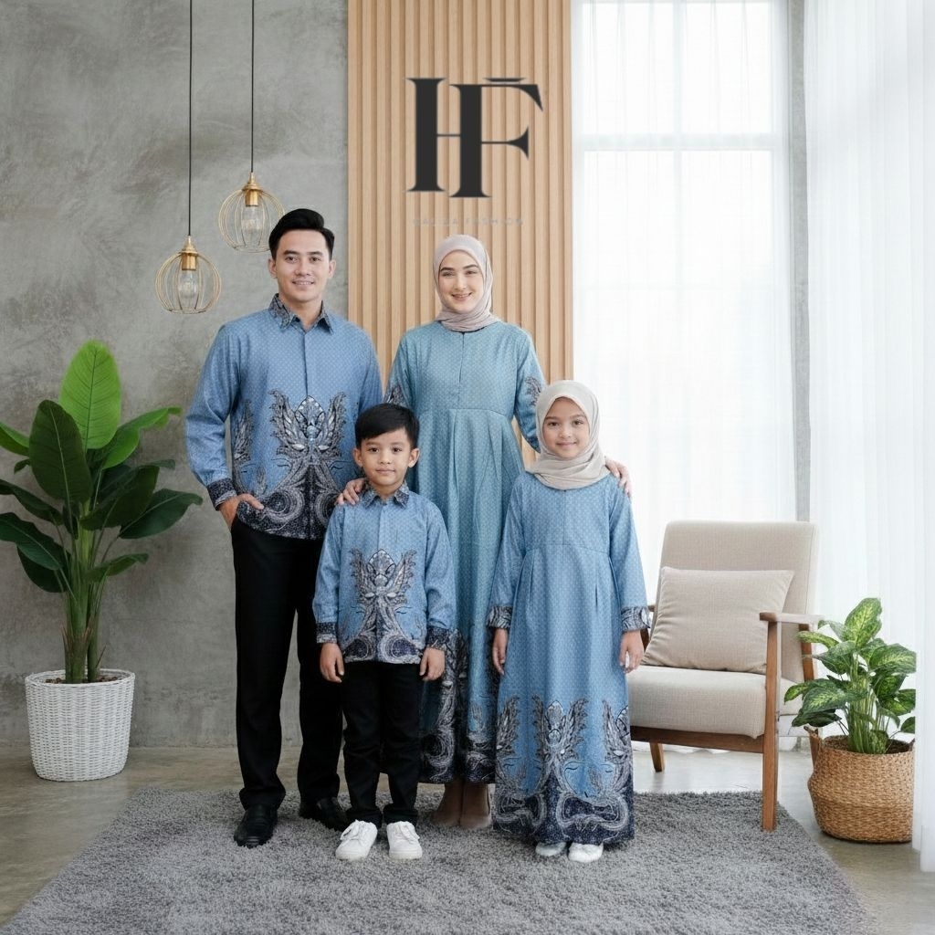 Batik Couple Keluarga Terbaru Modern Couple Ayah Bunda dan Anak Lengan Panjang Pendek Warna Biru Motif Cakrabuana Soft Blue