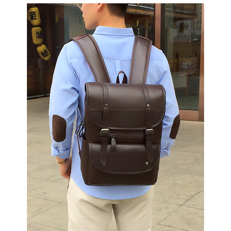 Ladiesstyle Ransel Pria / Cowok Bahan Kulit Pu Tebal Backpack Fashion Import Hot Item