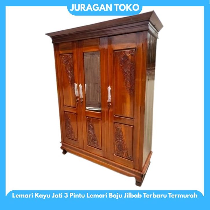 Lemari Kayu Jati 3 Pintu Lemari Baju Jilbab Lemari Pakaian Kayu Jati Terbaru Termurah