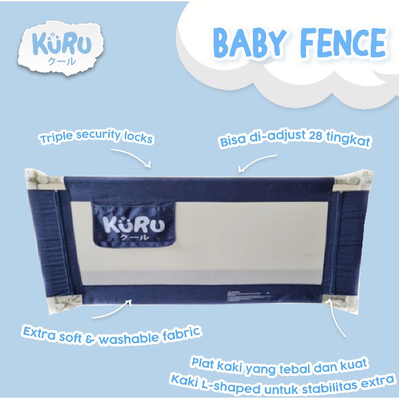 KURU Baby Bedrail 200cm 180cm 160cm Pembatas Pengaman Pagar Kasur Ranjang Bed Rail JUAL PER 1 SISI