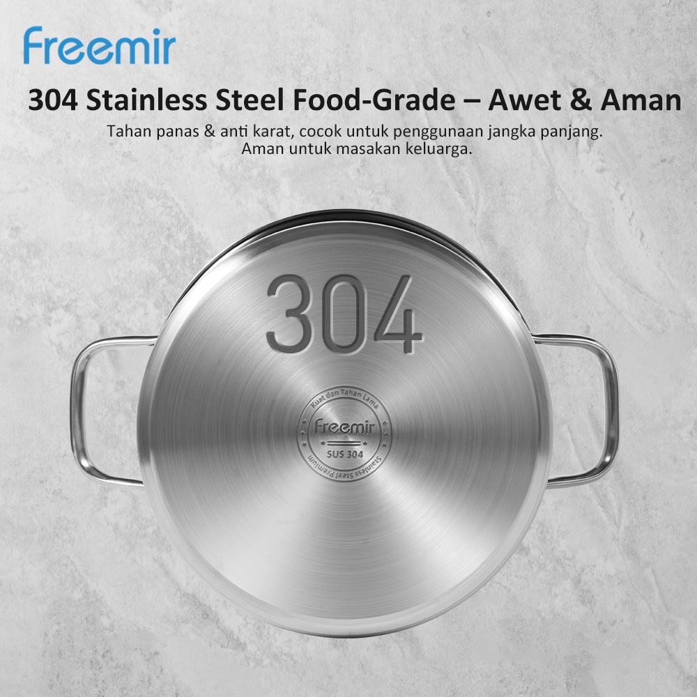 freemir Panci Sup Stainless steel 304 Double Bottom 26cm Goreng Rebus Premium 0-Coating