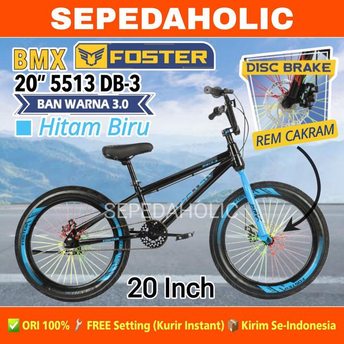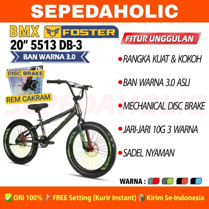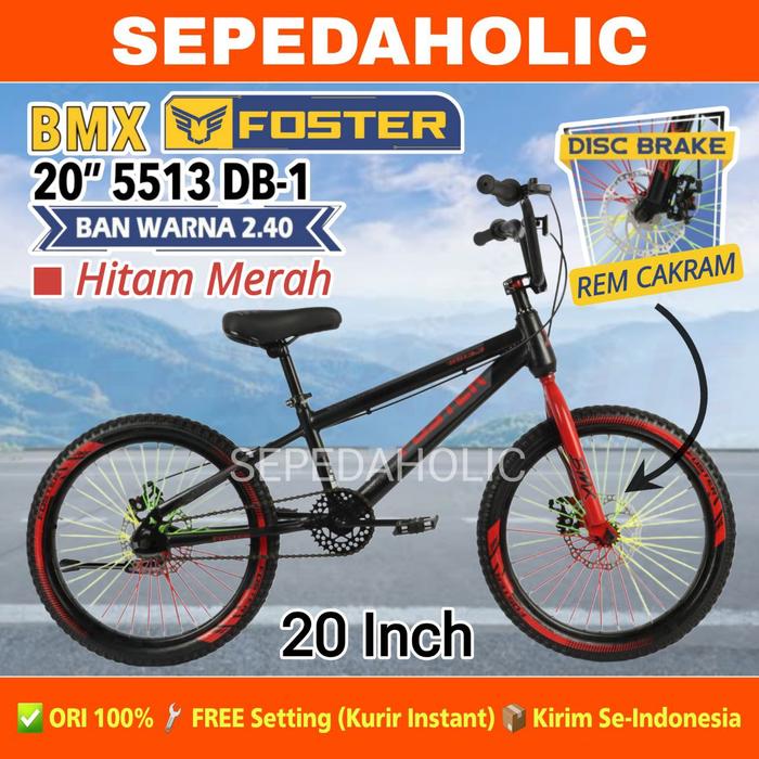 Sepeda Anak Laki Bmx Foster 5513-1 Ban 2.40 / 5513-3 Ban 3.00 Db Ukuran 20 Inch Rem Cakram - Ban 2.4 Hitam Merah