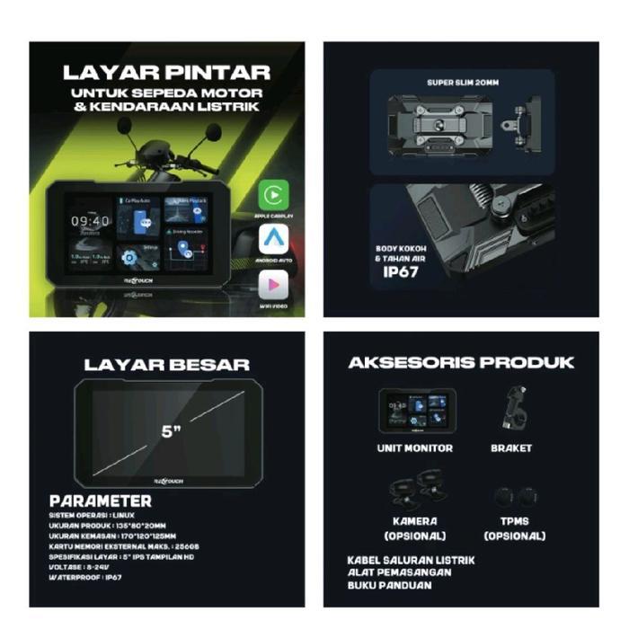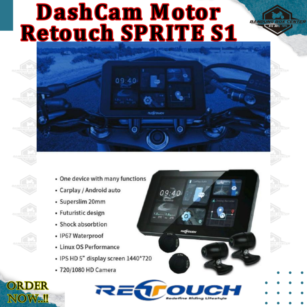 Retouch Riding System Sprite S1 | DashCam Motor | GPS Maps Motor | Kamera Motor 140 derajat |Waterproof ipx7 | Riding system untuk semua motor Car Play