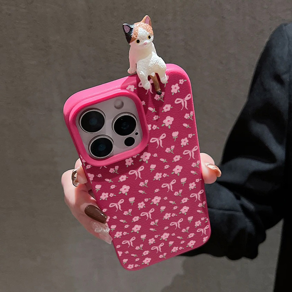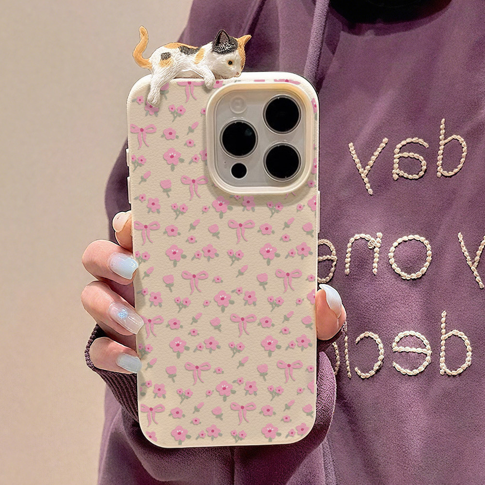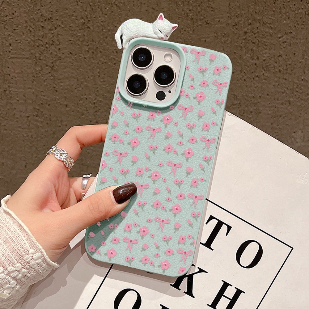 casing ponsel leather 3d cartoon lying cat iphone 11 xr 12 13 14 15 16 pro max 12pro 13pro silicone soft shockproof cove