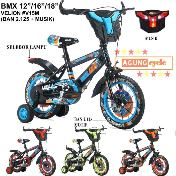 Sepeda Bmx 12 16 18 Inch Velion Erminio Salvo Musik Anak Laki Ban Pompa - V17 Musik Bk Rd, 12