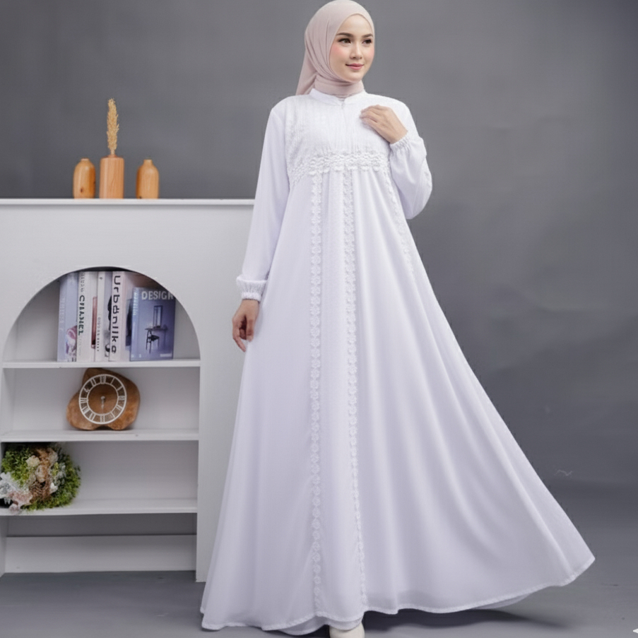 GAMIS WANITA PUTIH BERSIH CERUTY BABYDOLL BISA UNTUK UMROH DAN HAJI