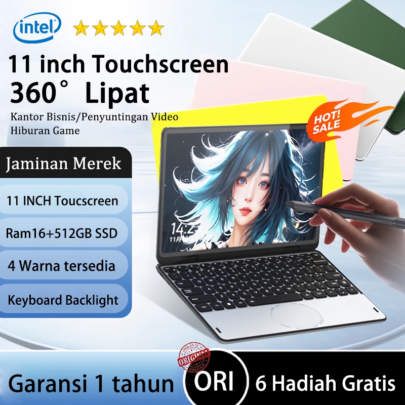 CNAST Laptop touchscreen 11 inch Mini murah Intel N100 Ram16+512GB SSD 360° pink/silver Windows11
