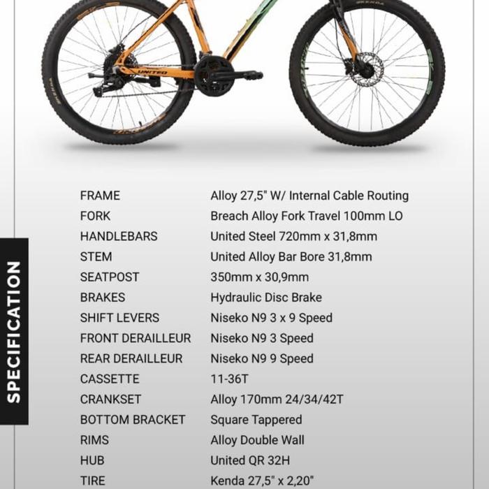 Sepeda Gunung 27,5 United Detroid 2.0 Hydrolic 3X9 Speed