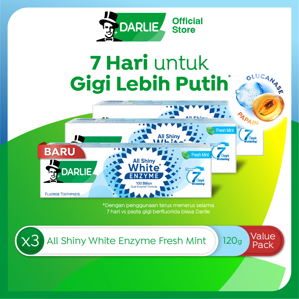 DARLIE All Shiny White Enzyme Fresh Mint Pasta Gigi Pemutih Whitening 120 gr - Value Pack Isi 3 Pcs